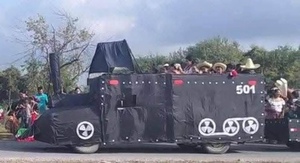 Cd. Victoria, Tamaulipas.– El tradicional desfile por el 20 de noviembre en el municipio de Cruillas tomó un giro inesperado este año, luego de que un grupo de niños y jóvenes participaran con tres carros alegóricos que, a primera vista, simulaban vehículos tipo “monstruo”, similares a los que suele utilizar el crimen organizado en la región.