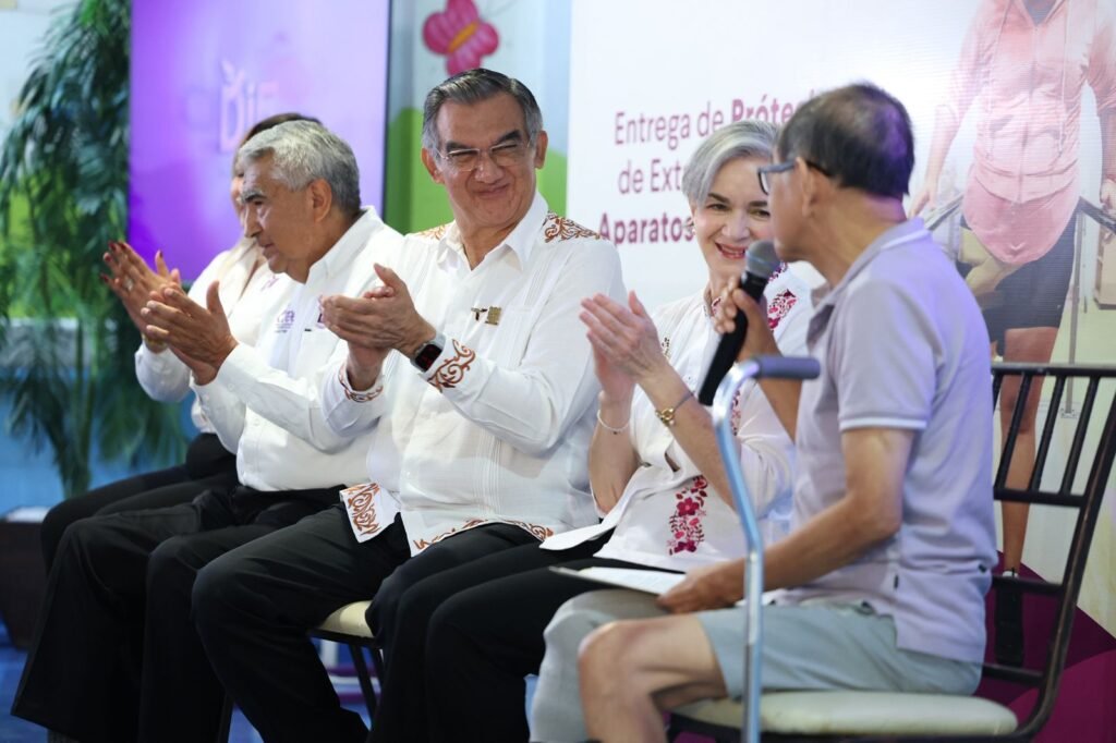 Ciudad Victoria, Tamaulipas. Con el compromiso de mejorar la calidad de vida de las personas con discapacidad, el gobernador Américo Villarreal Anaya y la presidenta del Sistema DIF Tamaulipas, la doctora María de Villarreal, entregaron prótesis y aparatos funcionales a niñas, niños, jóvenes, adultos y personas mayores que debido a enfermedades o accidentes, perdieron alguna de sus extremidades, a fin de que logren recuperar su movilidad, autonomía y bienestar.