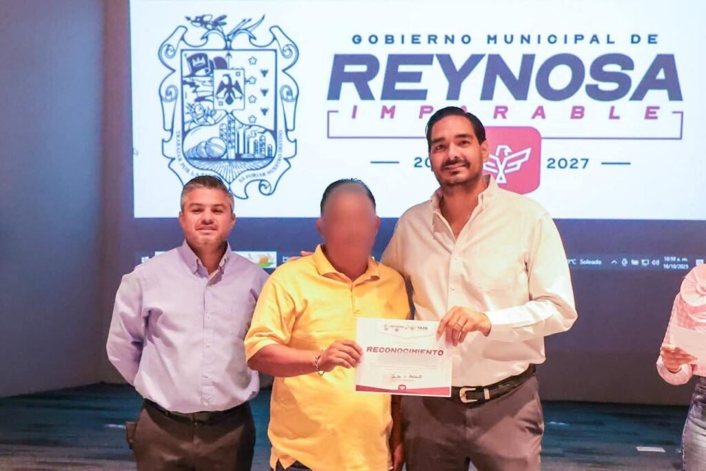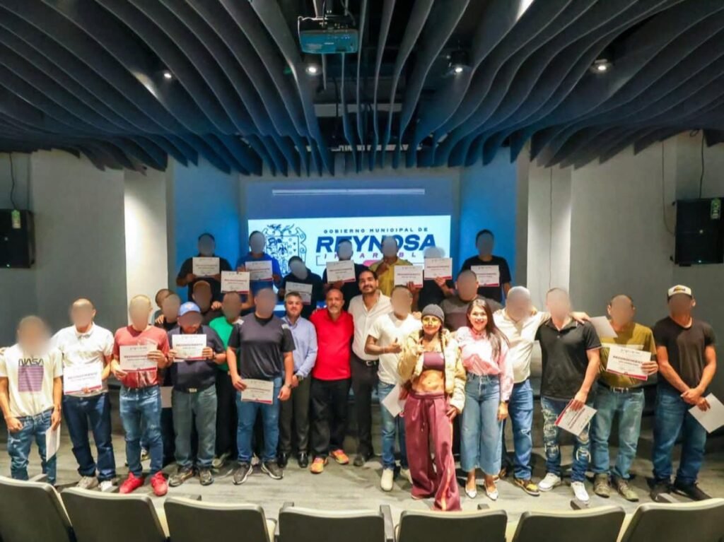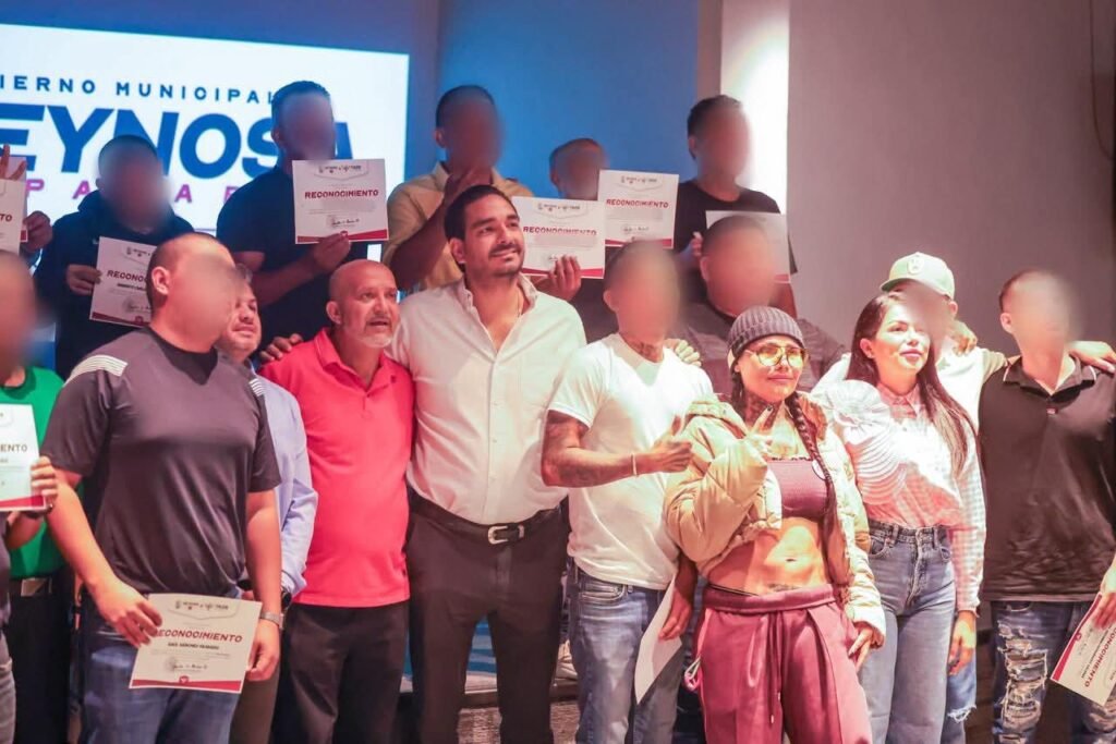 Reynosa, Tamaulipas. El Presidente Municipal Carlos Peña Ortiz, acompañado por la campeona mundial de box Mariana “La Barbie” Juárez, entregó reconocimientos a una nueva generación de egresados del programa social Tazo Dorado, que impulsa una nueva vida con más oportunidades para quienes sufre de problemas de adicción.