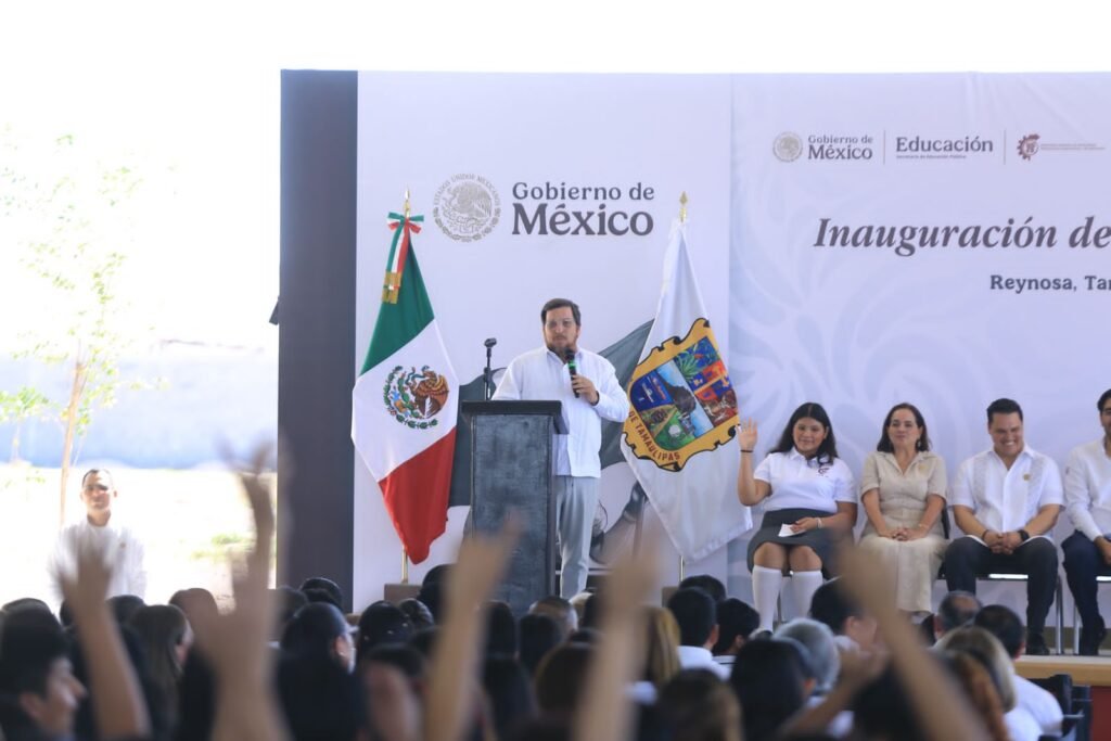 Reynosa, Tamaulipas. El gobernador Américo Villarreal Anaya reiteró su compromiso con la educación y destacó el apoyo con paquetes de útiles escolares, uniformes y libros de texto gratuitos para las y los estudiantes de Tamaulipas en el nuevo ciclo escolar, durante una gira de trabajo en Reynosa realizada junto al secretario de Educación Pública, Mario Delgado Carrillo.