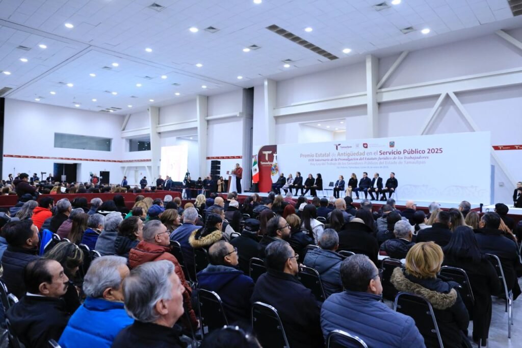 Ciudad Victoria, Tamaulipas. En el marco de la entrega del Premio Estatal de Antigüedad en el Servicio Público 2025, el gobernador Américo Villarreal Anaya reiteró que la reciente reforma a la Ley del IPSSET, además de preservar los derechos adquiridos, otorga mayores beneficios y fortalezas al bienestar de quienes contribuyen al desarrollo de Tamaulipas.