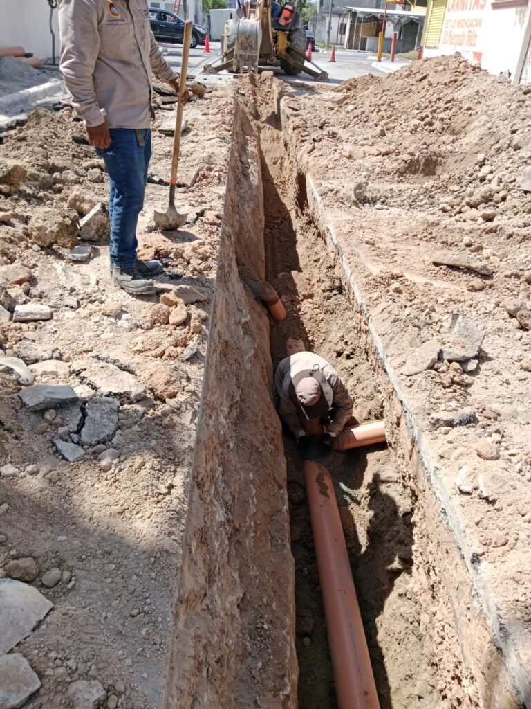 Cuadrillas del organismo continúan trabajando sobre la calle Oriente 1, esquina con Callejón B, en la colonia Las Cumbres, donde se lleva a cabo el reemplazo de tubería obsoleta por ductos de 8 pulgadas de diámetro. Estas acciones permitirán optimizar el sistema sanitario, así como prevenir encharcamientos y fugas de drenaje que afectan la salud y el entorno de los vecinos del sector.