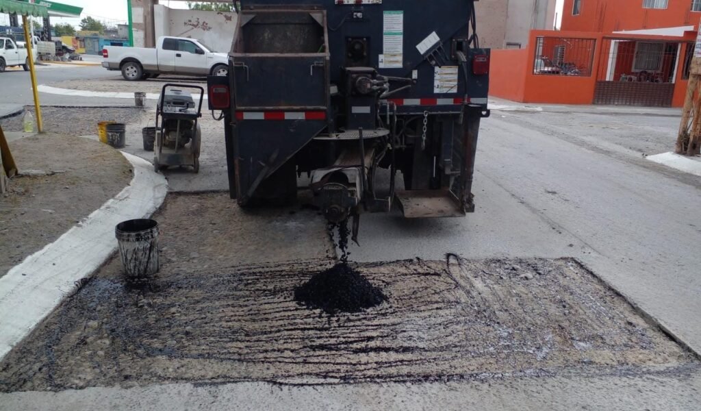– Se repararon baches con carpeta caliente en distintas calles.
