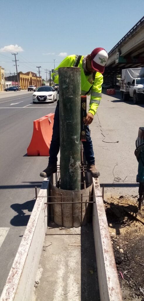Para mejorar la seguridad en el área, tanto para automovilistas como peatones, se están elaborando pozos profundos para colocación y cimbrado de bolardos metálicos en el inicio del delimitador.