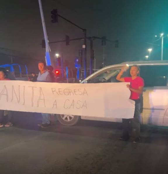 Con una manta donde piden que la joven regrese a casa, los manifestantes se apostaron esta mañana, aproximadamente a las 5:00 a.m., en un punto del bulevar Hidalgo, a la altura de la colonia Las Granjas.