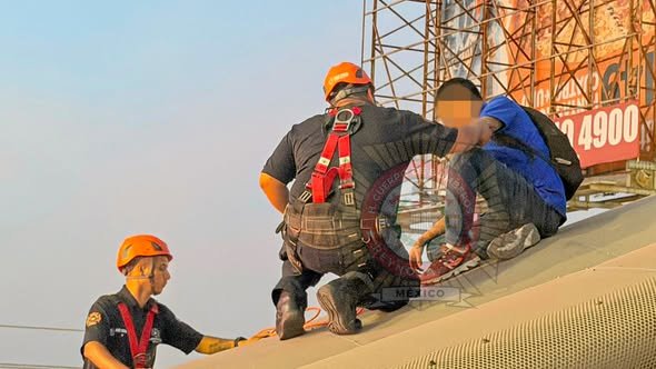 Durante más de 20 minutos le proporcionaron apoyo emocional, logrando obtener su confianza para finalmente ayudarlo a bajar del peligroso sitio.