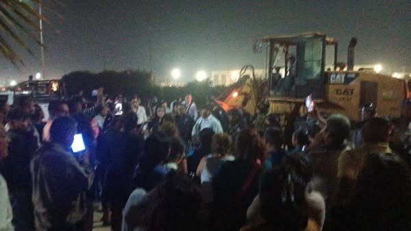 Poco después de las seis de la mañana se armó un sanquintín donde decenas de personas intentaban detener la entrada de la maquinaria.