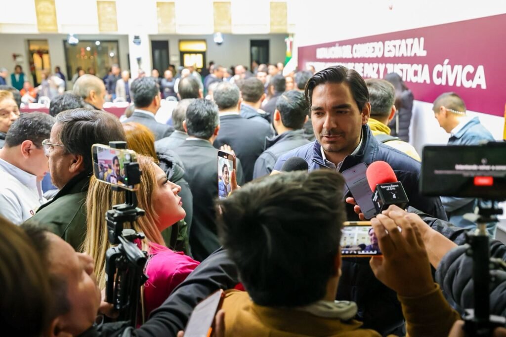 Tras participar en la Instalación del Consejo Estatal y Consejos Municipales de Paz y Justicia Cívica, el Alcalde aseguró que la administración del agua en las COMAPAS corresponde a la CNA, “y la dispersión sí la hace el Municipio, sin embargo algo muy importante que pido yo a los diputados, a los senadores, al gobierno federal, y también a la que estamos participando los municipios, es que en este nuevo tratado de libre comercio que se va a estar llevando para el dos mil veintiséis, también se contempla el tema del agua, yo creo que tenemos que crear las condiciones para que haya seguridad hídrica para las siguientes generaciones”.
