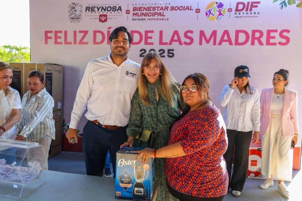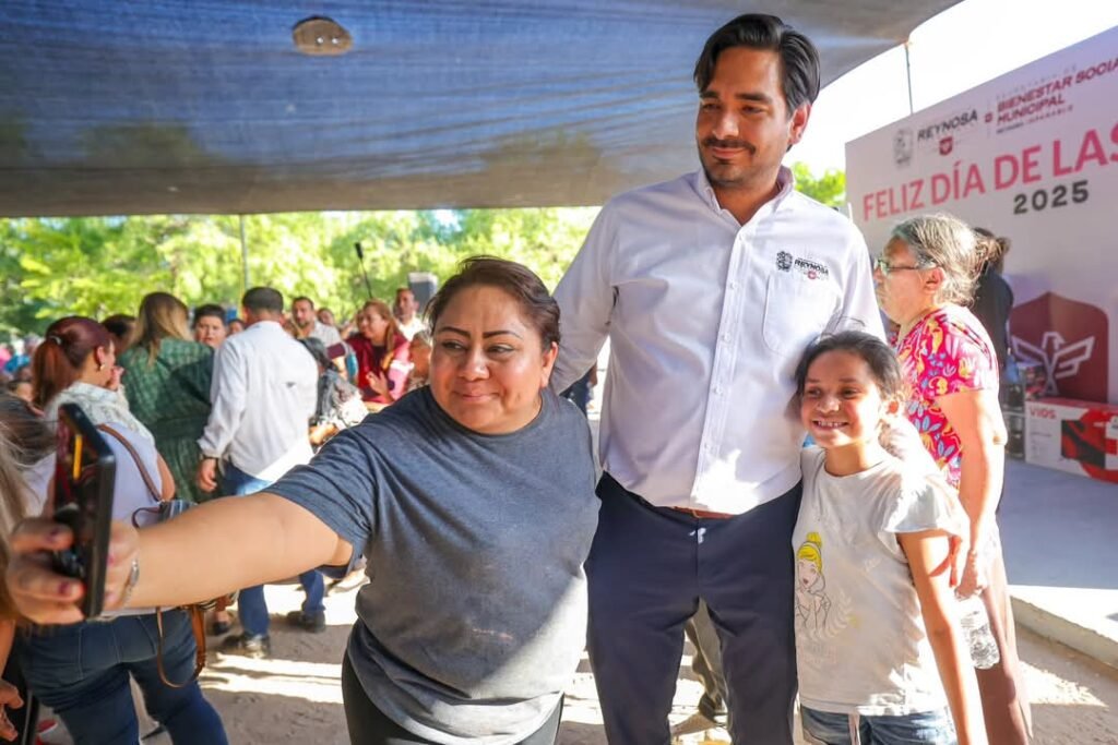 Reynosa, Tamaulipas. El Alcalde Carlos Peña Ortiz organizó un alegre festejo para conmemorar el Día de las Madres en el fraccionamiento Loma Real, donde las madres fueron tratadas como reinas y donde la Senadora Maki Ortiz se unió a la celebración, aportando regalos para las festejadas y llenando el evento de alegría y emoción.