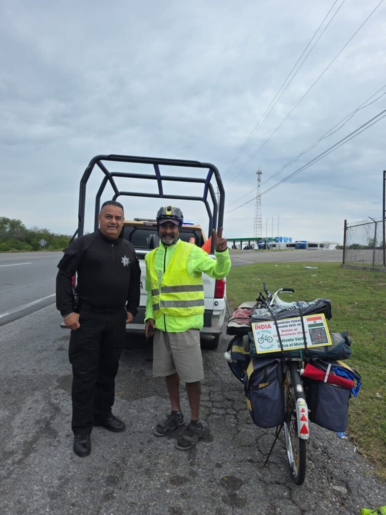Uno de los ciclistas, originario de la India, partió desde Argentina con destino a Canadá, en su paso por México, eligió la frontera tamaulipeca para salir del territorio nacional e ingresar a los Estados Unidos de América.