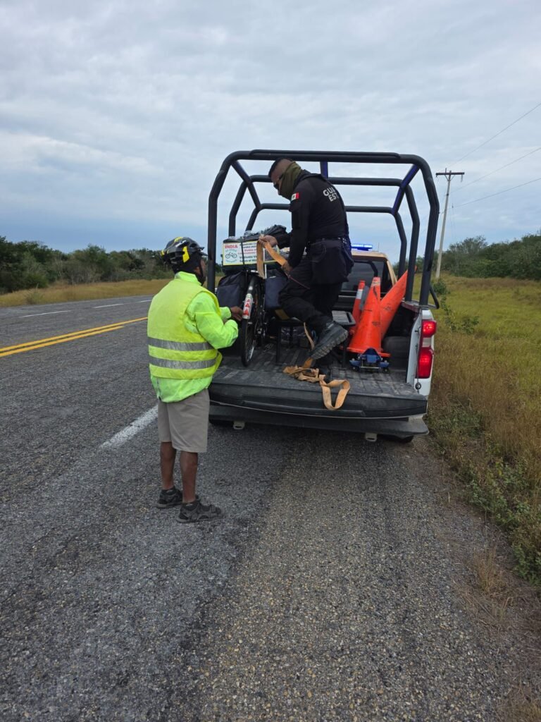 -Un ciclista mexicano y un extranjero se encuentran transitando por carreteras tamaulipecas con el apoyo de la Guardia Estatal