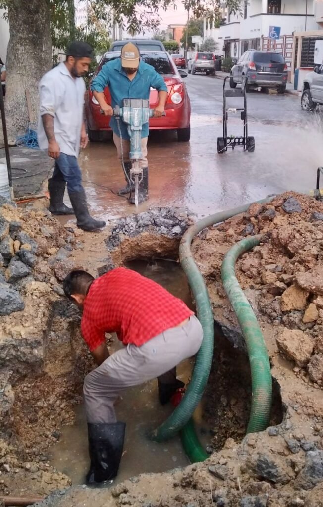 Reynosa, Tamaulipas. Las cuadrillas de la Comisión Municipal de Agua Potable y Alcantarillado de Reynosa realizan labores de manera permanente para atender reportes ciudadanos relacionados con fugas, con el objetivo de evitar el desperdicio del vital líquido y garantizar un mejor servicio a la población.
