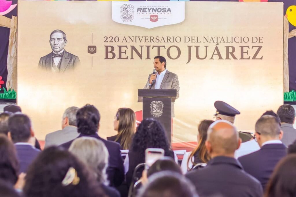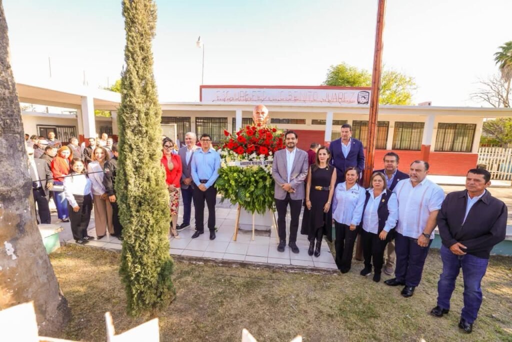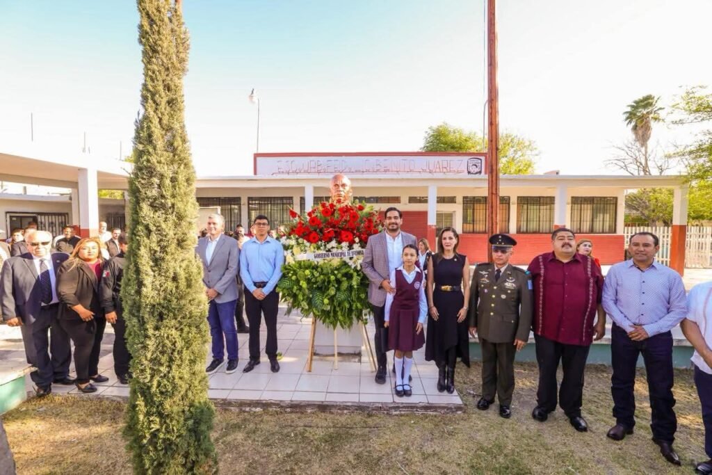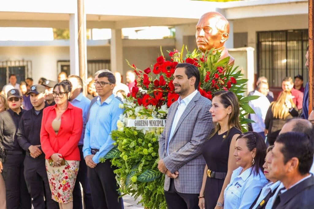 “Hoy conmemoramos a un gran hombre, 220 años del Natalicio de Benito Juárez García, nos recuerda lo importante que es el compromiso que tenemos que tener todos con nuestra patria; los mexicanos tenemos un pedacito de Benito Juárez en nuestro corazón y en nuestra mente y ojalá esa misma visión nos siga guiando por muchos años más”, dijo el Presidente Municipal, en presencia de la oradora oficial, señorita Jimena Álvarez Vázquez, de la Secundaria Técnica 44.