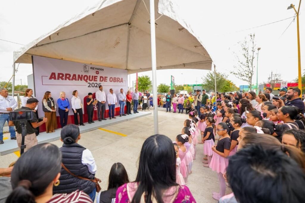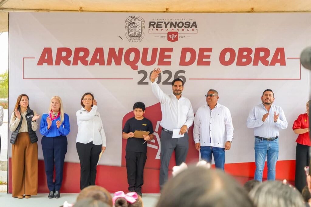 La obra se construye en Plaza IRCA Jarachina y en este memorable inicio participación alumnos y maestros del Instituto, vecinos que se benefician con un espacio público para su esparcimiento, así como; Eduardo López Arias, Secretario de Obras Públicas; Hugo Felipe Chávez Herrera, Secretario de Bienestar Social Municipal; Gabriela Rosas Blanco, Directora del DIF Reynosa; niño Iker Emanuel García López, representante de los alumnos del IRCA Jarachina; y la Regidora Juana Alicia Sánchez Jiménez, entre otros invitados.