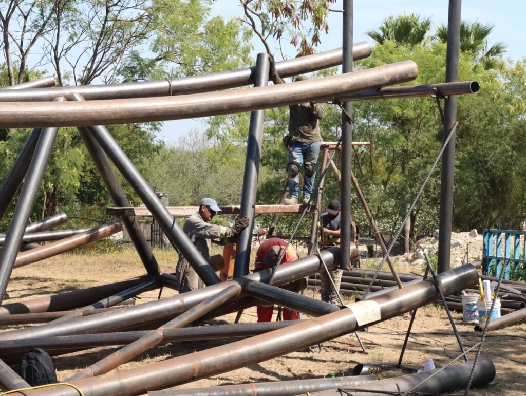 “Estamos trabajando en la colocación de la estructura metálica y la de apoyo junto a la concha acústica, así como el acceso al escenario del lado sur con una base de escalones de concreto armado”, detalló el titular de la SOP.