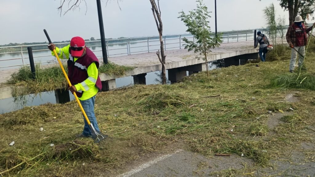 Personal de la Secretaría realizó el corte de maleza en el malecón de la laguna la escondida; también se procedió a levantar maleza y descacharre en el ejido Los Cavazos.