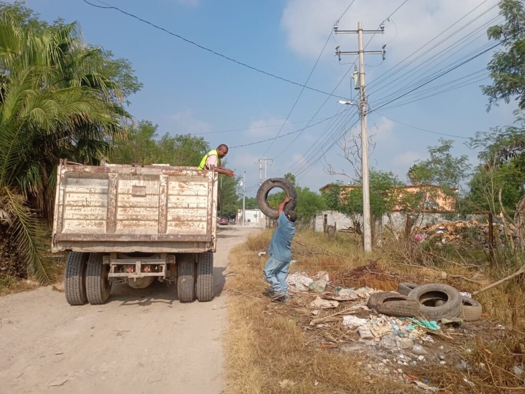 En atención a las instrucciones del Alcalde Carlos Peña Ortiz y por indicaciones del Secretario de Servicios Públicos Primarios, mario Soria Stamatio, personal de la dependencia se dio a la tarea de levantar basura y cacharros en el ejido Los Cavazos.