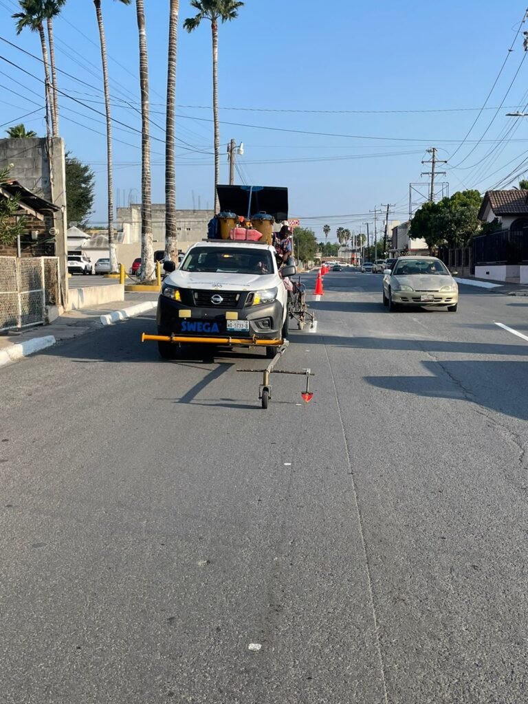 De igual manera, se pintaron los guiones blancos en el bulevar Hidalgo con bulevar Fundadores, sobre la calle Nogal.