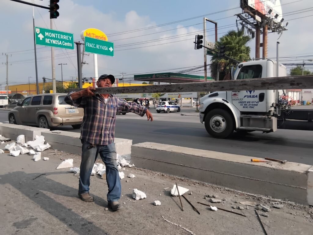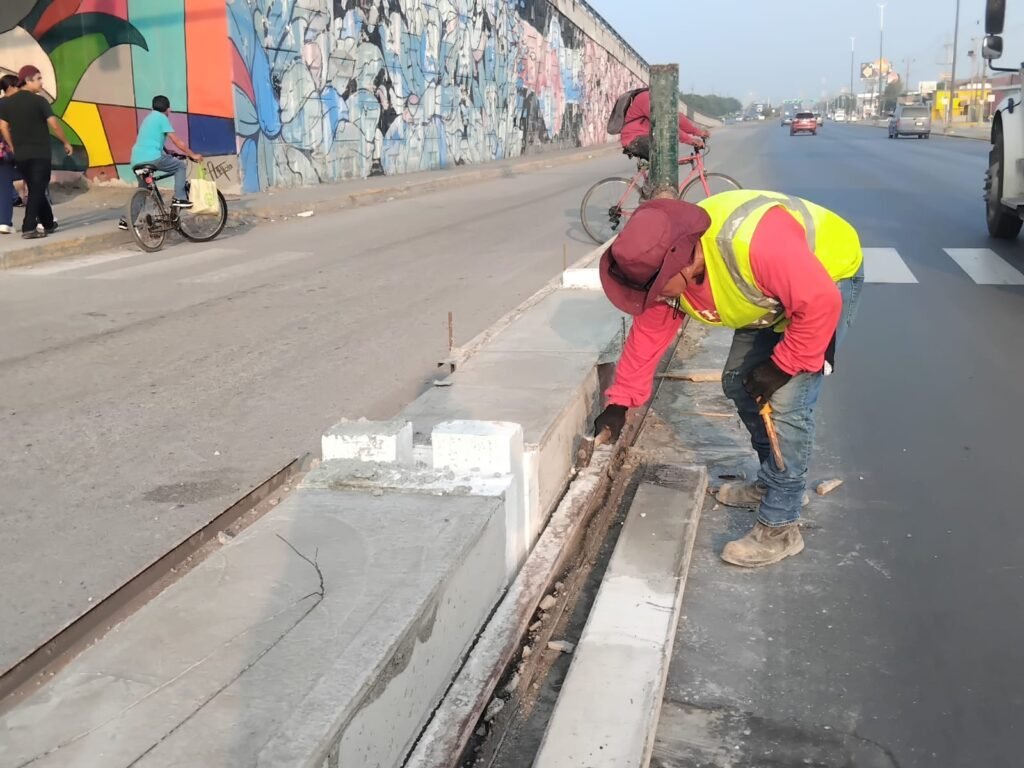 En el distribuidor vial de la colonia La Joya con carretera a Río Bravo, se retiró la cimbra metálica y se procedió a la limpieza del área.