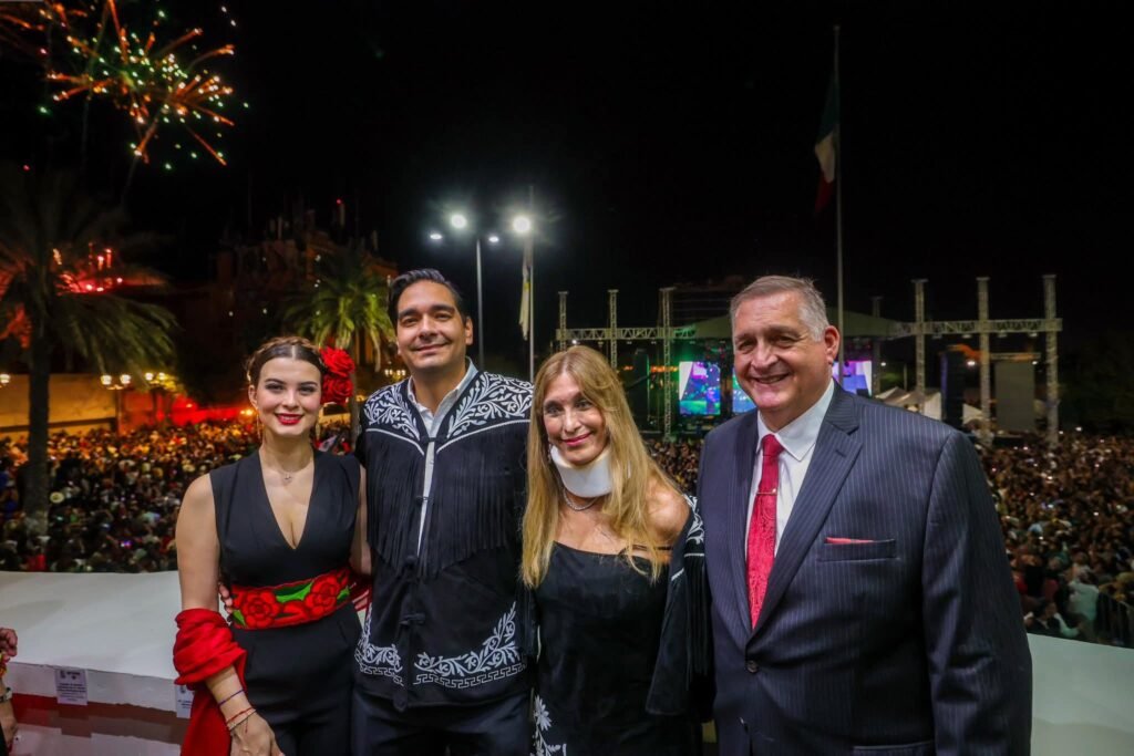 “¡Vivan los Héroes que nos Dieron Patria y Libertad; Viva Hidalgo, Viva Morelos, Viva Josefa Ortiz de Domínguez, Viva Allende, Viva Aldama, Viva la Independencia Nacional; Viva Reynosa, Viva Tamaulipas, Viva México, Viva México, Viva México!”, exclamó el Alcalde, acompañado por su esposa Alejandra Yelitza Garza, para luego salir a presentar a la Banda Los Recoditos.