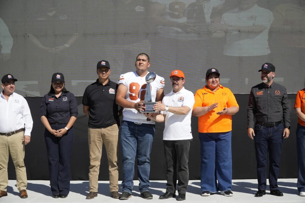 En una fiesta deportiva que tuvo como marco el Estadio Universitario “Prof. Eugenio Alvizo Porras”, Dámaso Anaya encabezó la ceremonia en la que hizo entrega de trofeos a los mejores jugadores de la temporada 2025 y dio la patada de kick off en el centro de la cancha con la presencia de los equipos participantes.