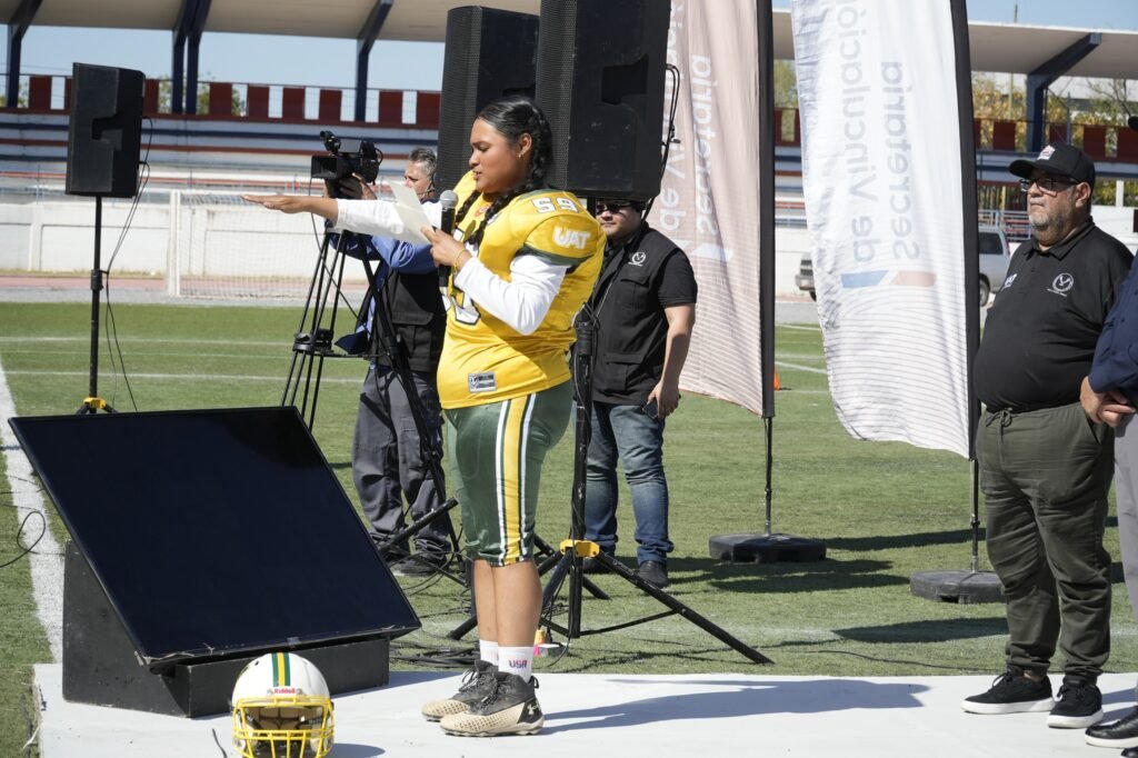 Matamoros, Tamaulipas. Reafirmando su compromiso con el deporte estudiantil, el rector Dámaso Anaya Alvarado, dio la patada inicial y declaró inaugurada la Temporada 2026 Categoría Intermedia de la Liga Universitaria de Futbol Americano de la UAT (LUFAUAT).