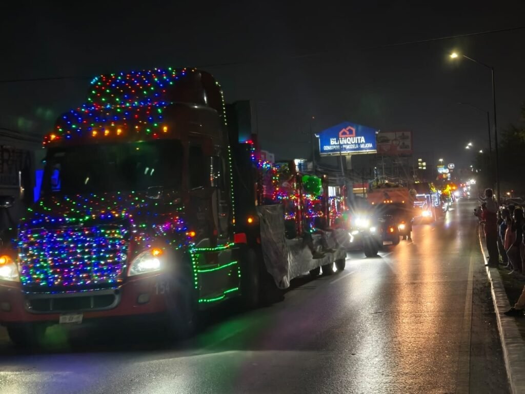 El tradicional desfile navideño en el que participan camiones de una empresa refresquera salió a las 6:00 de la tarde de un punto del bulevar Hidalgo ubicado frente a Plaza Periférico, siguió por toda esa vialidad y luego sobre el bulevar Morelos, hasta arribar a los patios del Polideportivo, donde las autoridades y miles de ciudadanos ya los estaban esperando.