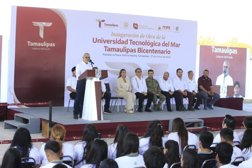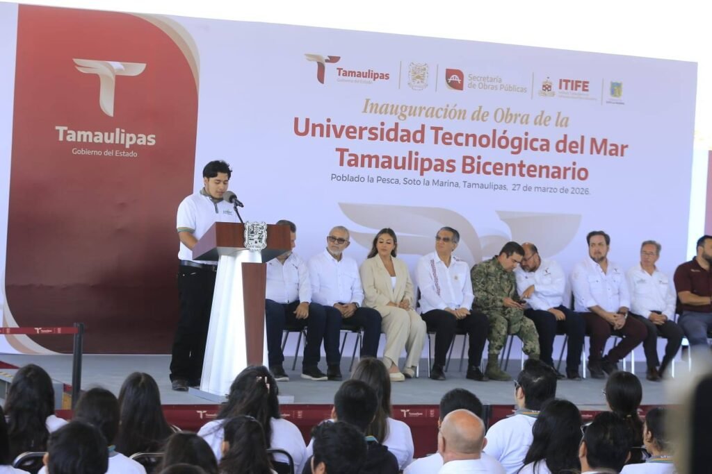 Soto la Marina, Tamaulipas.- El modelo humanista para la educación que impulsan los gobiernos de la transformación contribuye para tener cada vez una mejor sociedad, afirmó el gobernador Américo Villarreal Anaya al entregar obras por más de 19 millones de pesos en la Universidad Tecnológica del Mar Tamaulipas Bicentenario.