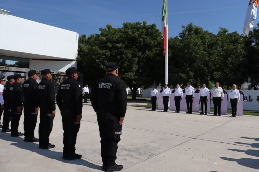 Acompañaron al secretario en la línea de honor, el subsecretario de Operaciones de la Guardia Estatal, Enrique Dena Salgado; el encargado del despacho de la Coordinación General de Administración, Ángel De León Yllades; el coordinador General de Operaciones, Arturo Alonso García De León; el encargado del despacho en Dirección del Consejo de Desarrollo Policial, Juan José Sesín Carpio; y el director de Agrupamientos Policiales, Carlos Gallegos Curiel.