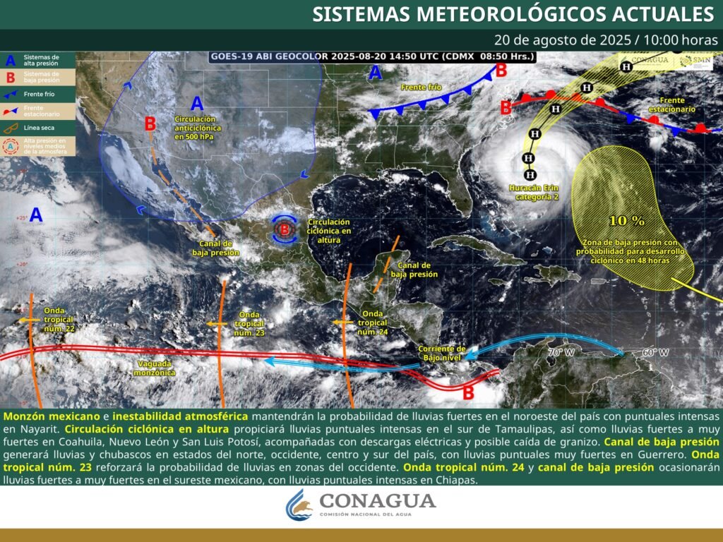 El Servicio Meteorológico Nacional, en su imagen interpretada, incluye ya el avance de un sistema frontal procedente de Canadá y el norte de los Estados Unidos.