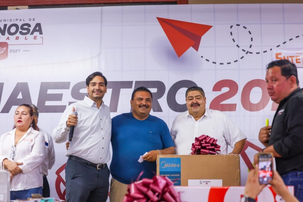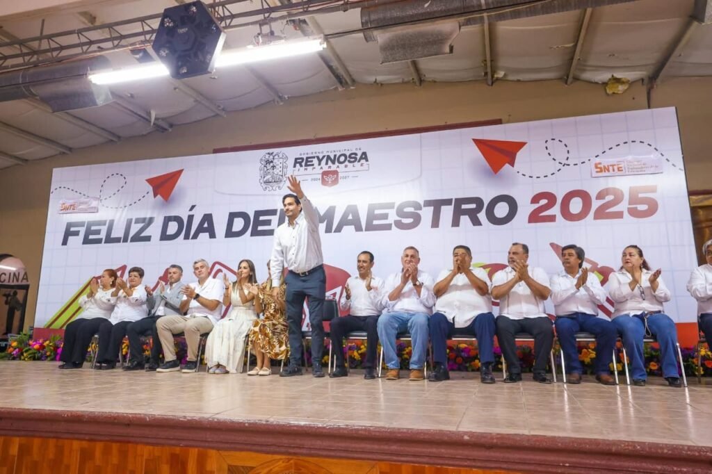 Ante los Maestros el Presidente Municipal reconoció su trabajo y el valor fundamental de la educación como la herramienta principal para el desarrollo, “nosotros desde el Gobierno siempre vamos a construir un municipio mejor de la mano de ustedes y si a ustedes les va bien a Reynosa le va bien”.