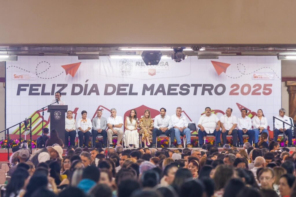 “Carlos es un buen amigo de todos los Maestros, el Presidente que le ha dado valor al magisterio, gracias Carlos y a nuestra amiga la Senadora Mak Ortiz, también a los Diputados Claudia Alejandra Hernández Sáenz y Juan Carlos Zertuche Romero que han estado apoyando al magisterio” dijo en su mensaje el Profesor Acuña Tovías, acompañado en el presídium por el Presidente del Patronato del DIF-Reynosa, Carlos Luis Peña Garza, entre otras personalidades.
