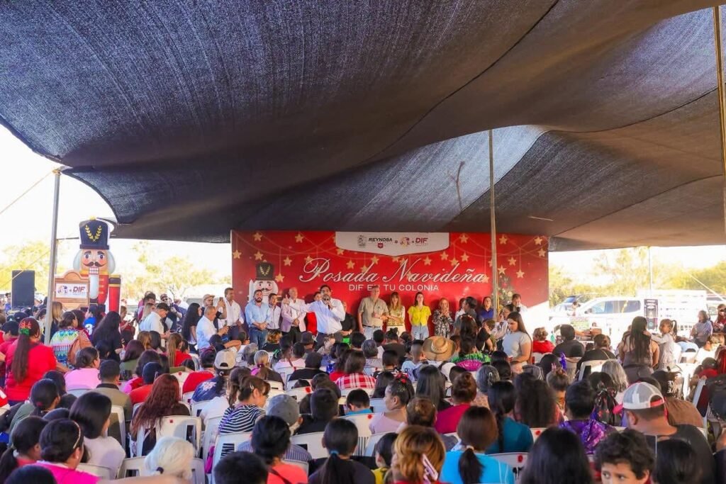 Reynosa, Tamaulipas. Una convivencia con más de 2 Mil 800 asistentes se dio en la Benito Juárez, con la Posada DIF En Tu Colonia 2025, encabezada por el Alcalde Carlos Peña Ortiz, su esposa Alejandra Yelitza Garza y el Presidente del Patronato del DIF-Reynosa, Carlos Luis Peña Garza, acompañados por la Senadora Maki Esther Ortiz Domínguez.