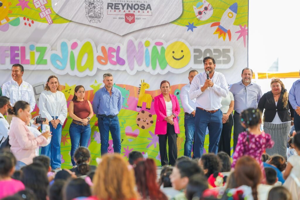 Este miércoles 30 de abril, entre, payasos, pastel, regalos, piñatas y bocadillos, y mucha alegría los niños de Reynosa escucharon al Presidente Municipal, quien les pidió: “queremos que nuestros niños y jóvenes se conviertan en profesionales exitosos, como abogados, ingenieros, doctores y maestros. Para lograr esto, es importante que todos aportemos nuestro esfuerzo”, dijo y agradeció a los padres de familia por su valiosa compañía.