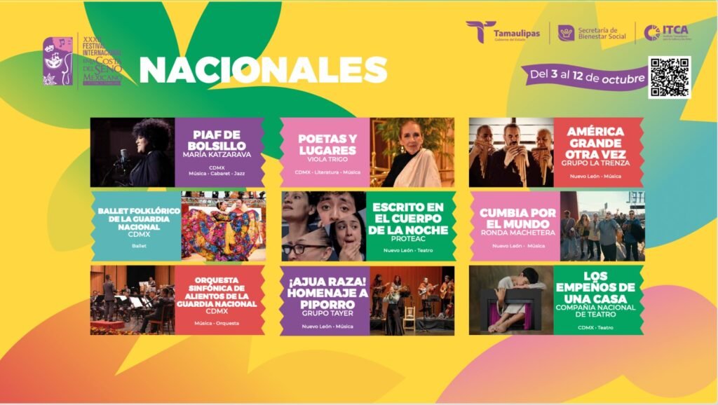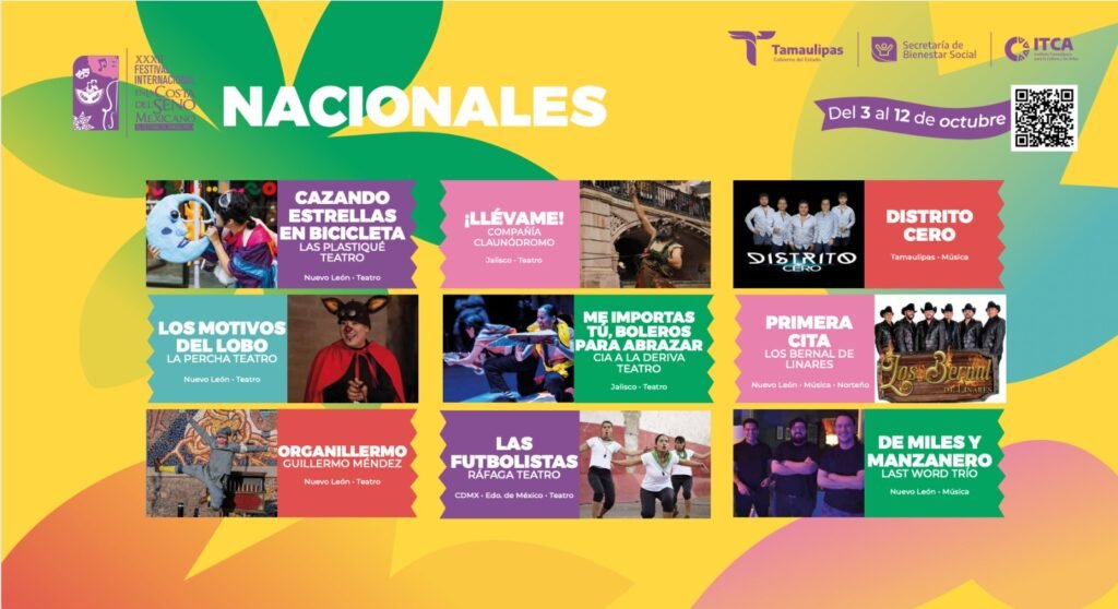 En conferencia de prensa, la secretaria de Bienestar Social (SEBIEN), Silvia Casas González, junto al director del Instituto Tamaulipeco para la Cultura y las Artes (ITCA), Héctor Romero Lecanda, precisó que del 3 al 12 de octubre de este año, los teatros, foros, plazas y espacios abiertos de Tamaulipas serán los escenarios en los que se presentarán 66 artistas tamaulipecos, 26 propuestas nacionales y 9 proyectos internacionales, con un enfoque de inclusión y diversidad, y especial atención a las infancias y juventudes.