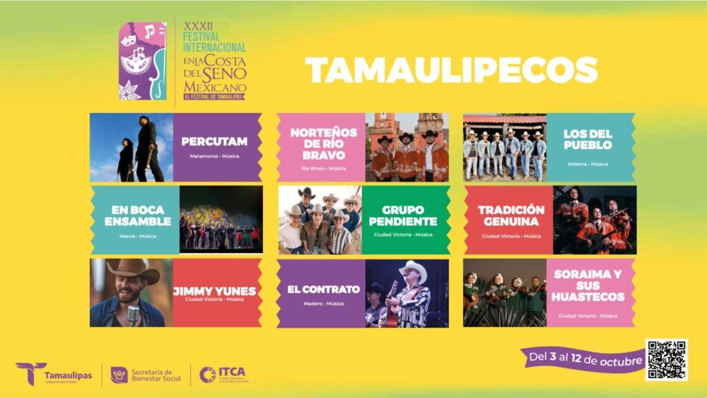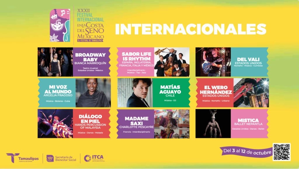 Ciudad Victoria, Tamaulipas. El Festival Internacional en la Costa del Seno Mexicano, en su 32ª edición, llegará a los 43 municipios del estado con eventos gratuitos que se extenderán a las comunidades más apartadas, para el disfrute de todas y todos los tamaulipecos, gracias al impulso del gobernador Américo Villarreal Anaya a los programas y acciones generadoras de bienestar.