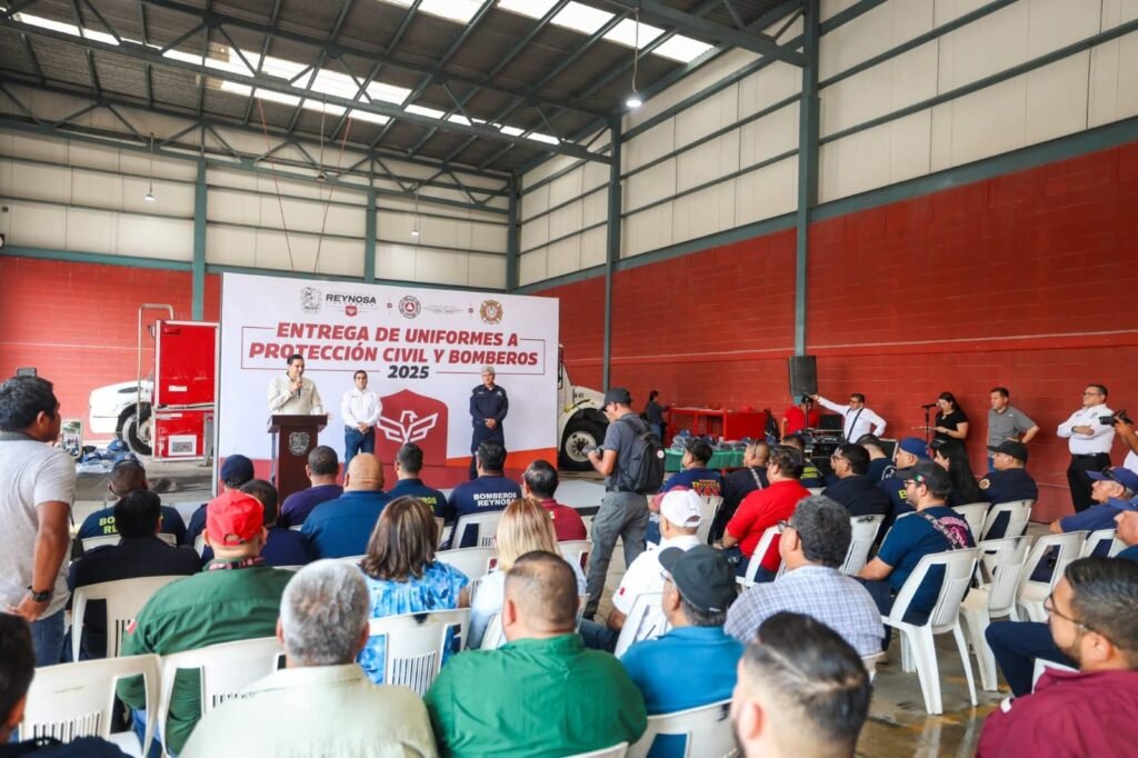 Reynosa, Tamaulipas. El Presidente Municipal, Carlos Peña Ortiz, encabezó una emotiva ceremonia, con la presencia de Javier Iván Lam Cantú, en la que entregó equipo de protección a los elementos de su corporación, Protección Civil y Bomberos de Reynosa, Los equipos entregados incluyen: