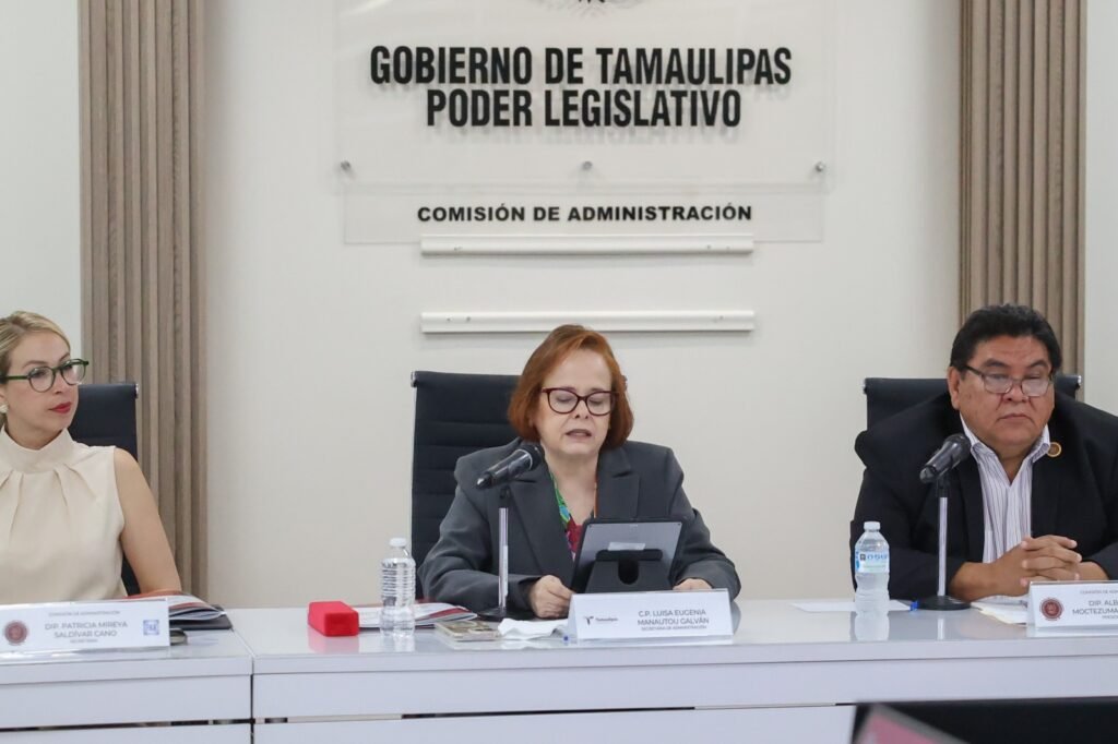Ciudad Victoria, Tamaulipas.- Con acciones orientadas a fortalecer la eficiencia institucional, la transparencia y el bienestar de las y los servidores públicos, Luisa Eugenia Manautou Galván, secretaria de Administración, compareció ante la Comisión de Administración del H. Congreso del Estado, donde presentó los avances y resultados de la dependencia a su cargo, en el marco del cuarto informe del gobernador, Américo Villarreal Anaya.
