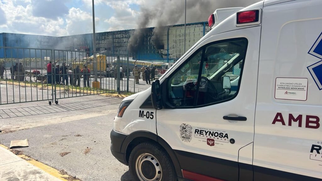 Reynosa, Tamaulipas. Reynosa, Tamaulipas. Una fuerte movilización provocó el incendio ocurrido esta tarde, poro después de las 14:00 horas, en la empresa maquiladora Copanoro, ubicada en el parque industrial Colonial, cerca del acceso al puente internacional Reynosa-Pharr.
