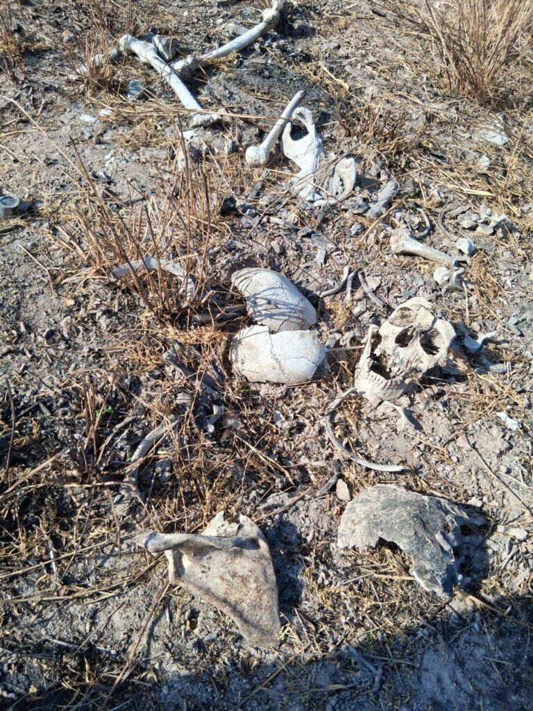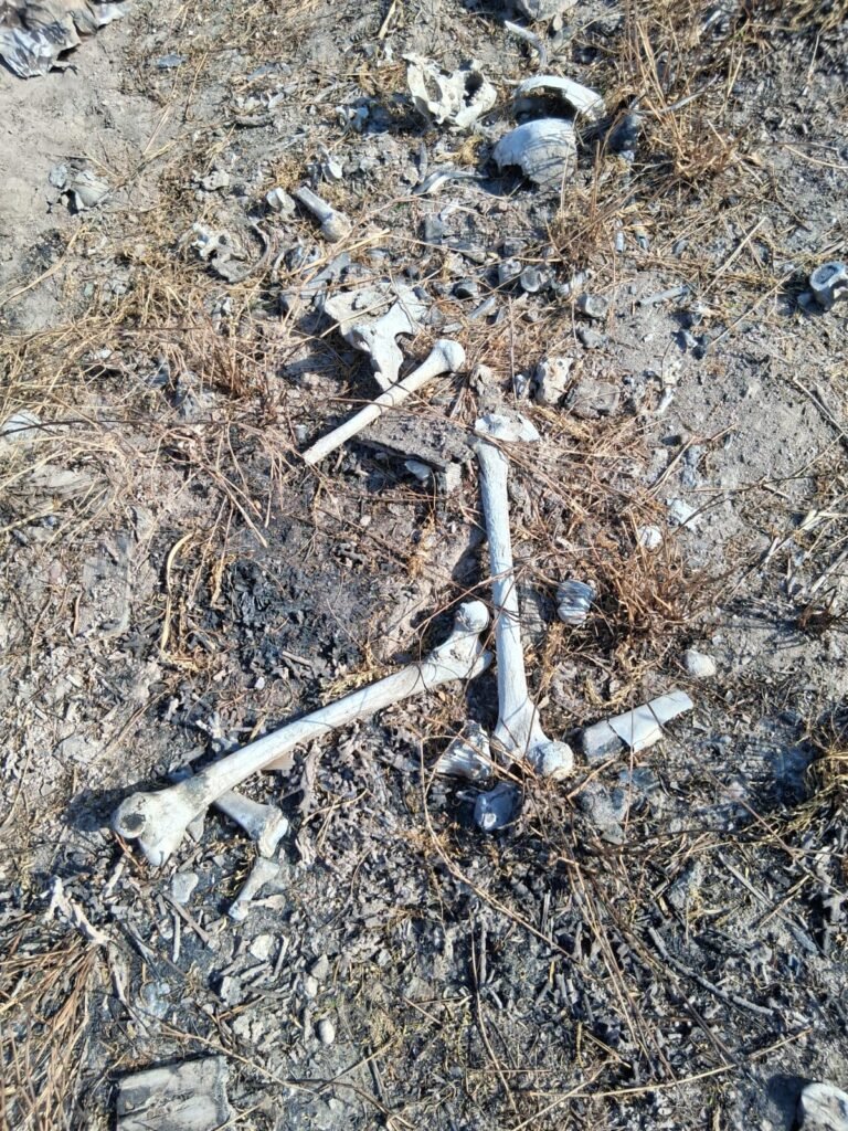 Edith González compartió 20 fotos de los huesos, donde se observa parte de un cráneo, fémures y tibias, así como fragmentos de ropa.