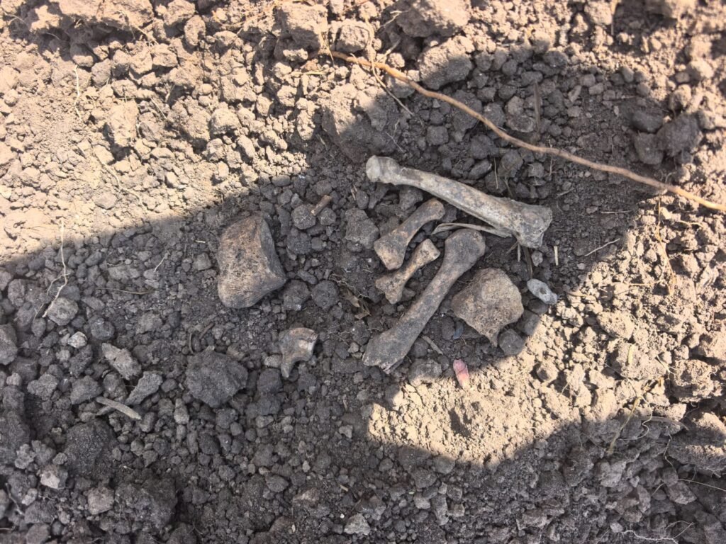 Agregan que durante la indagación del día de hoy, hallaron algunos huesos pero que se tendría que ampliar el pozo para tratar de ubicar la totalidad de la fosa y en su caso, rescatar más restos humanos.
