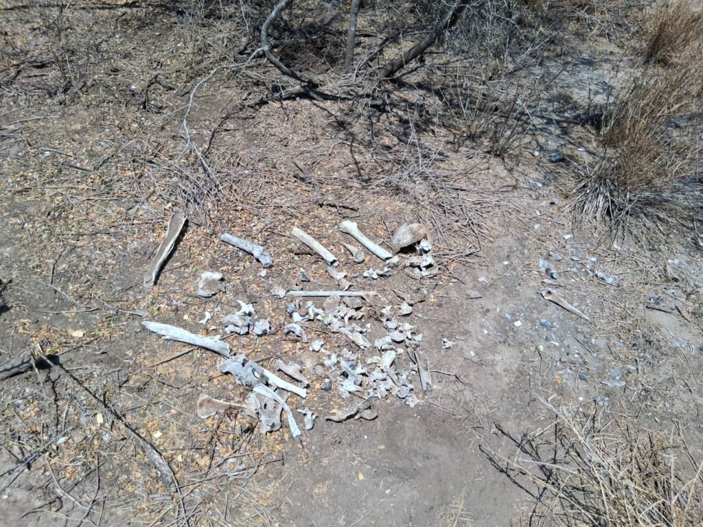 Con el paso del tiempo y la acción de los elementos naturales, los huesos quedan limpios y desperdigados.