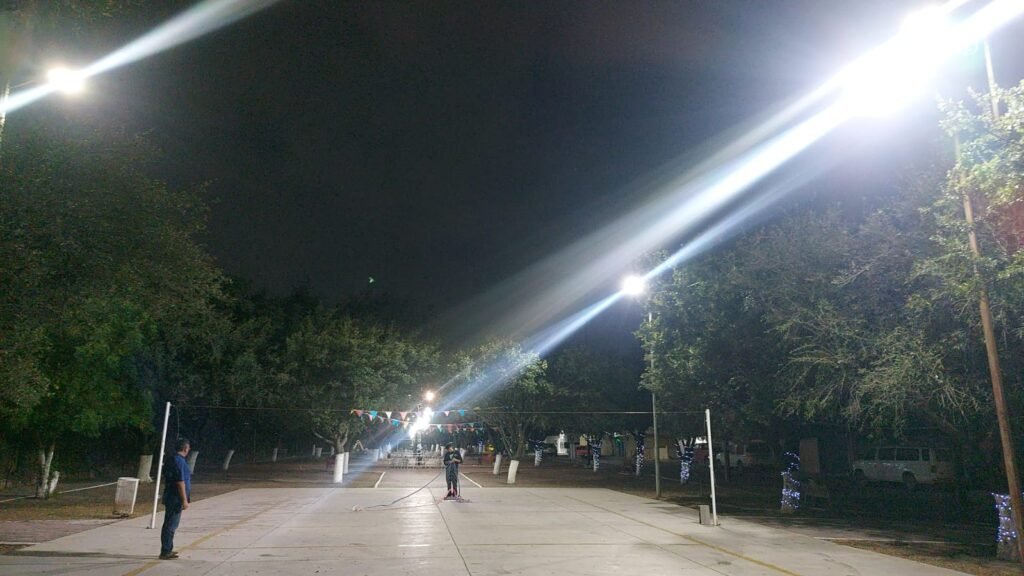– Reparación de alumbrado público en la plaza de la colonia Módulo 2000.