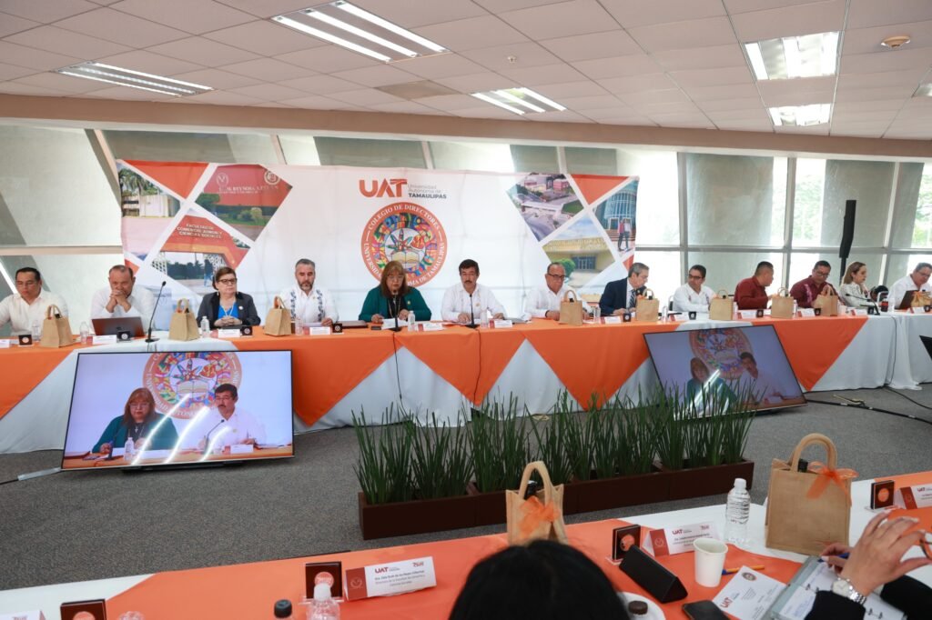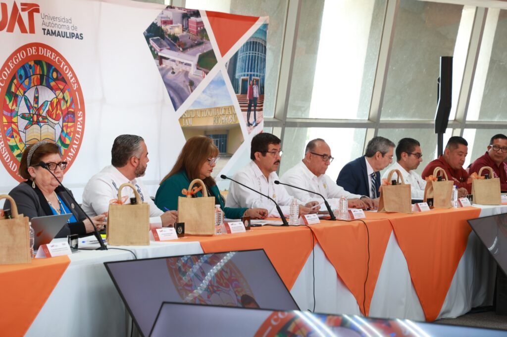 Reynosa, Tamaulipas. El rector de la Universidad Autónoma de Tamaulipas (UAT), Dámaso Anaya Alvarado, encabezó la 14.ª Reunión del Colegio de Directores, llevada a cabo en el Centro Universitario Sur (CUS), donde se reunió con titulares de las 27 dependencias académicas y funcionarios del gabinete de la Rectoría para revisar los avances institucionales y definir nuevas estrategias orientadas al fortalecimiento académico y administrativo de la casa de estudios.