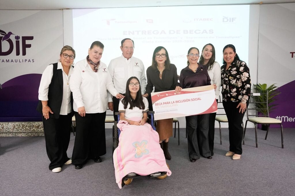 Ciudad Victoria, Tamaulipas. Con el compromiso de garantizar el acceso y permanencia en el sistema educativo estatal, el DIF Tamaulipas, que preside la doctora María de Villarreal, entregó las becas “Esperanza de Tamaulipas” y “Para la Inclusión Social en Tamaulipas”, dirigidas a niñas, niños y jóvenes de atención prioritaria.