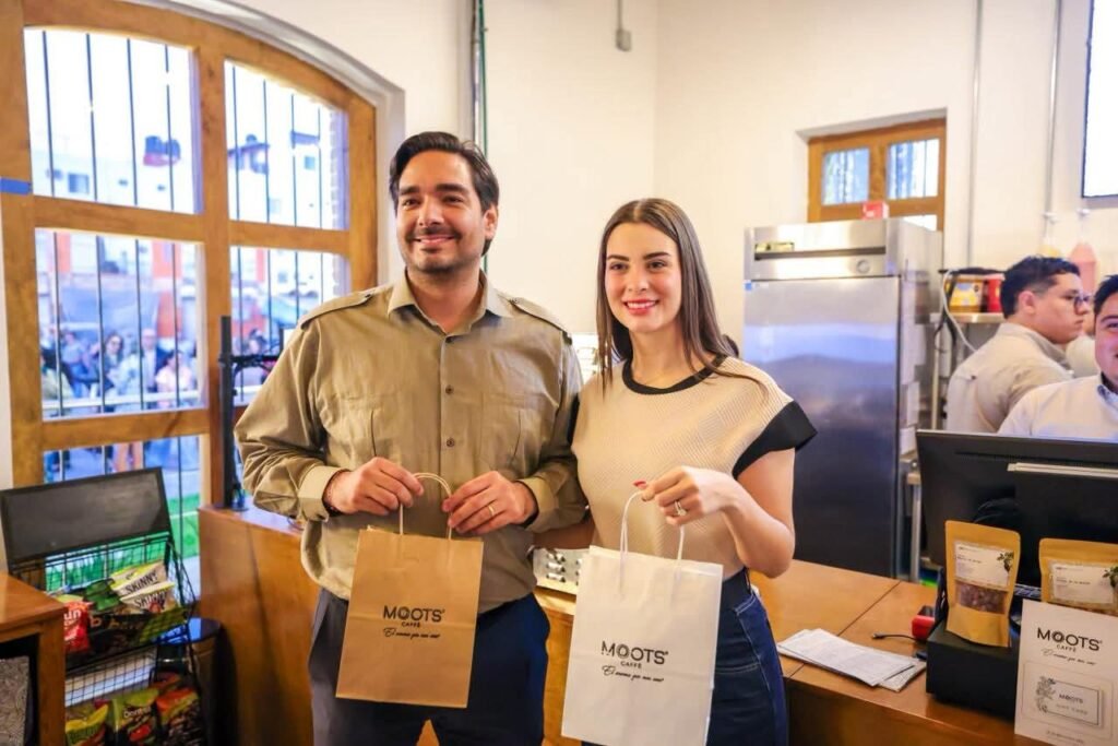 Reynosa, Tamaulipas. El Presidente Municipal Carlos Peña Ortiz acompañado de su esposa Alejandra Yelitza Garza inauguró el Café Moots Ferrocarril, junto a los creadores de la marca, Oscar Emir Rodríguez y Giovanni Gastelum, primeros en el programa municipal “Apertura de Negocios Costo Cero”, un paso extraordinario para el desarrollo económico y turístico de la ciudad.