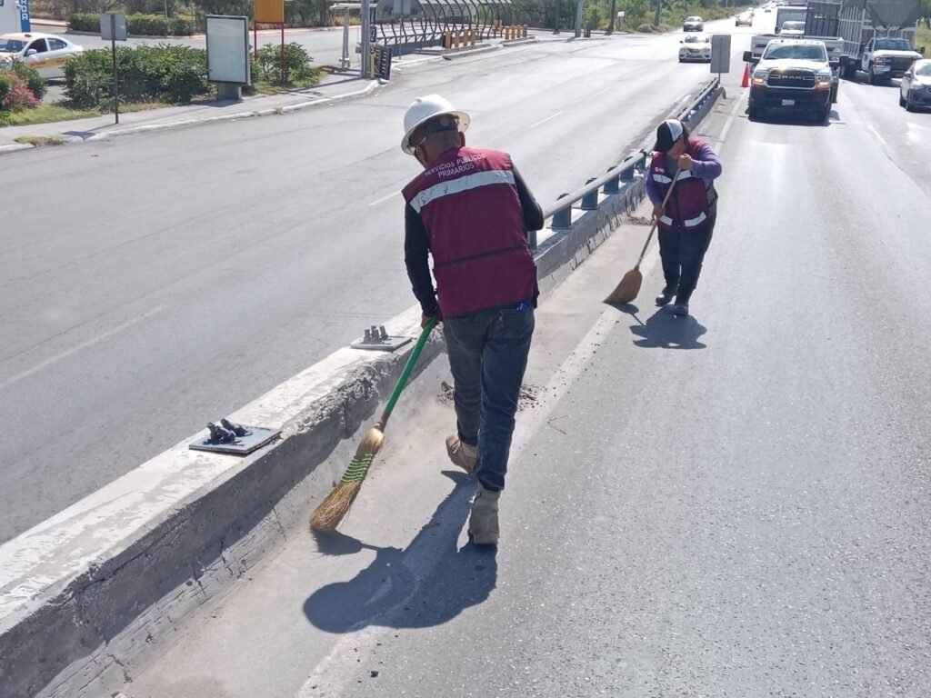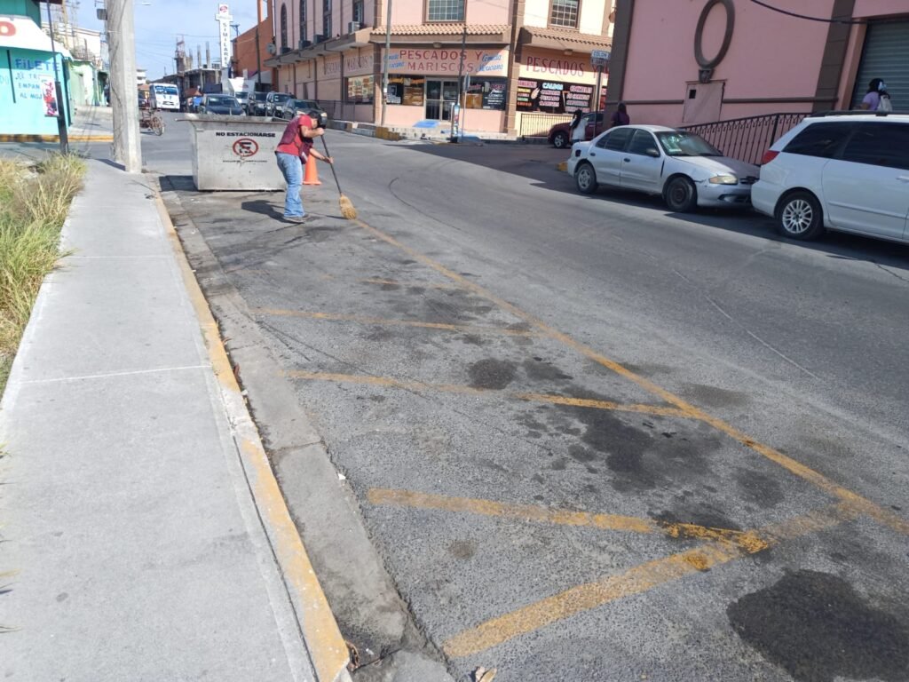Como parte de los trabajos que se realizan diariamente en la ciudad, se llevaron a cabo labores de limpieza en la superficie de rodamiento del puente vehicular ubicado frente a Mi Tienda, a la entrada al Instituto Tecnológico de Reynosa, de oriente a poniente.