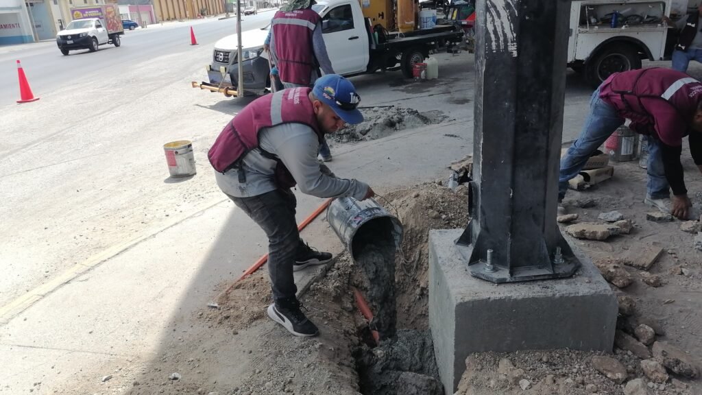 Por último, personal de la dependencia aplicó un reforzamiento a la base del poste de un semáforo que se localiza en la carretera a Río Bravo, frente a la entrada a la colonia La Joya.