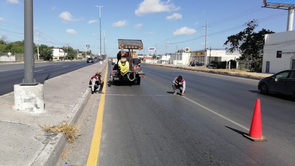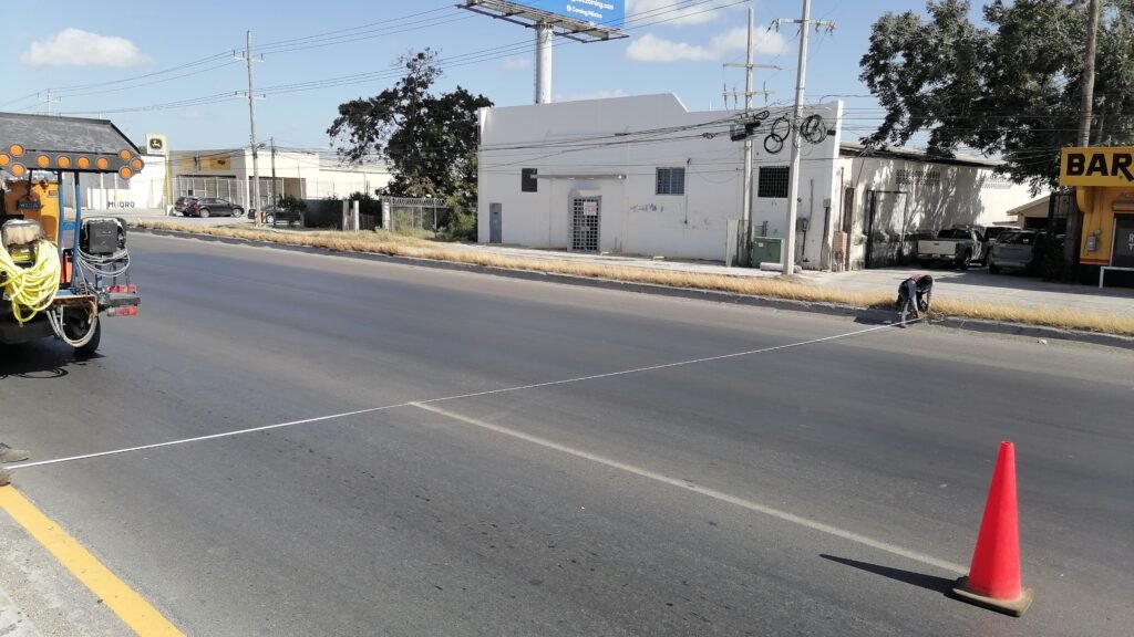 La intensa actividad prosiguió en el puente de la Joya, en la carretera a Río Bravo con la demarcación de carriles.