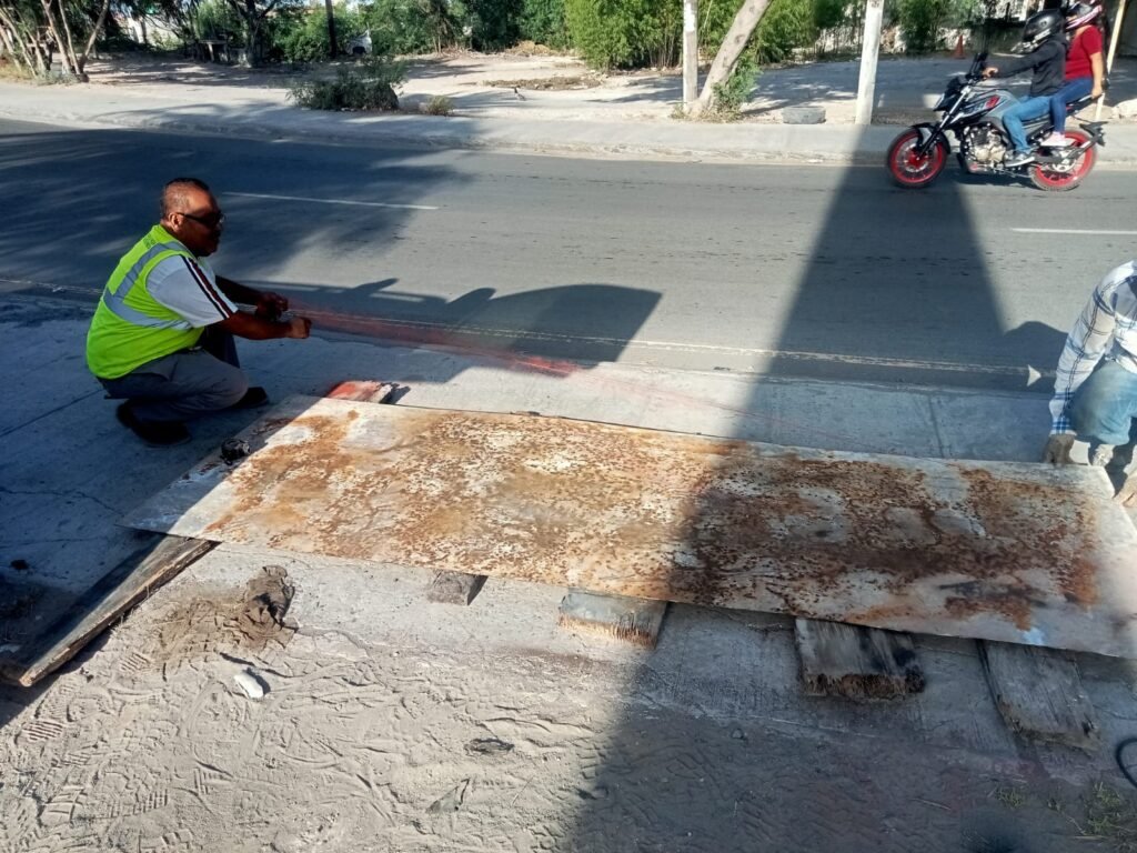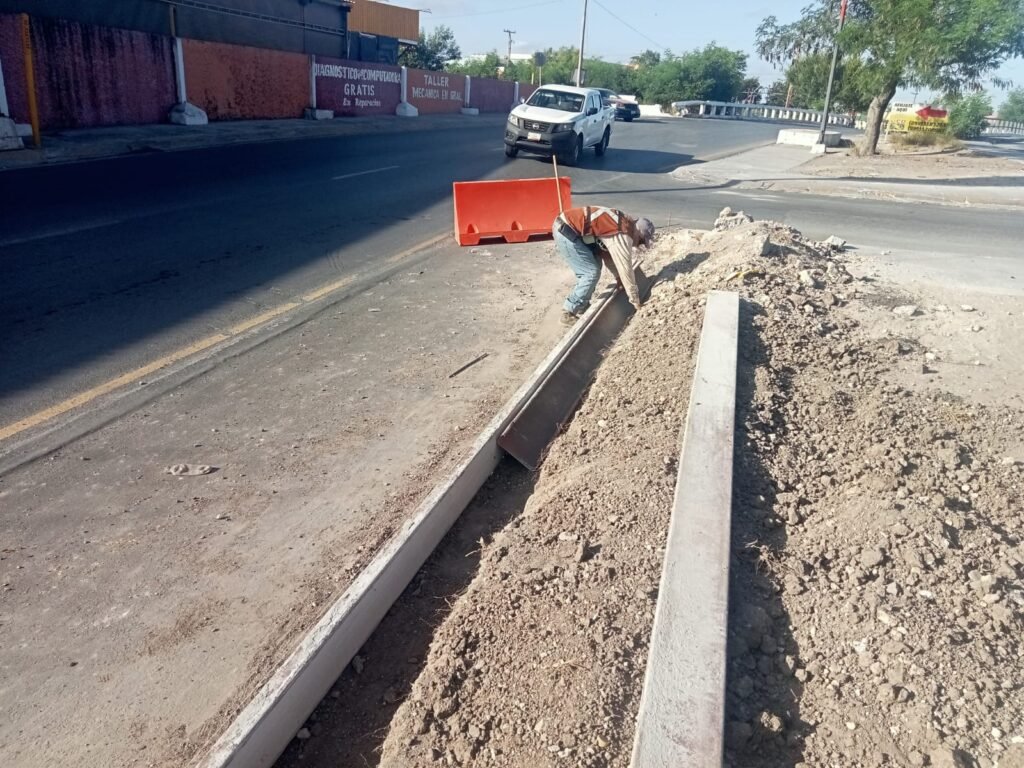 Se habilitó la cimbra metálica en guarniciones bajo el puente que se ubica en la carretera a Río Bravo, en el distribuidor vial que va a la colonia La Joya.